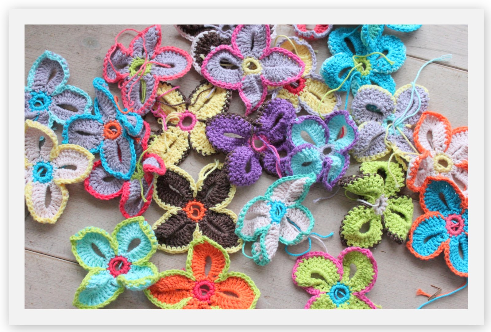 ... har overtaget lysten til at få lavet flere af Hawaii-blomsterne. Går lige nu og overvejer om de allerede færdiglavede blomster skal bruges til en guirlande i stedet for et tæppe. Frygtede lidt at jeg ville havne her, for min tålmodighed til længervarende projekter har det ikke så godt! Og så er det bare sjovere at prøve nyt, og se resultatet hurtigt!!